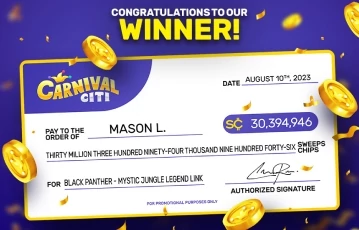 Trust Carnival Citi to give you a typically outrageous welcome bonus. It’s a deal that will give all new customers 10,000,000 Coins and 5,000 Sweeps Chips just for registering their first account at the site.